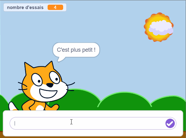 Si la réponse du joueur est trop petite, le programme doit dire que le nombre est plus grand.