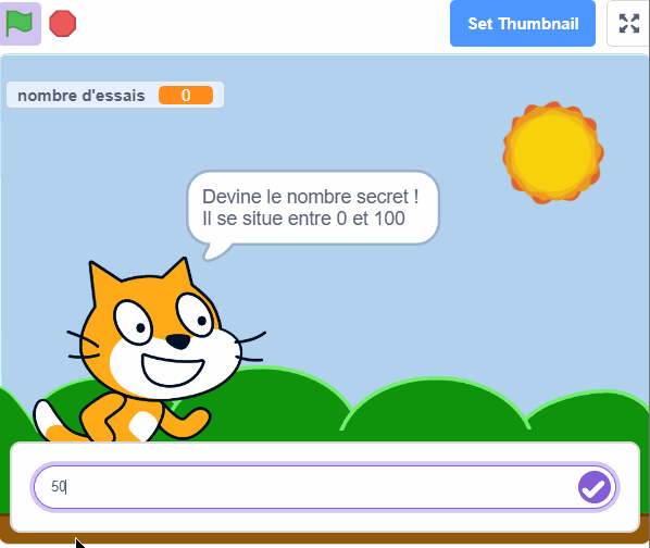 - Teste ton programme en cliquant sur le drapeau vert