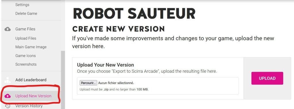 Si tu fais des modifications de ton jeu, tu peux mettre à jour le jeu sur le site de construct.