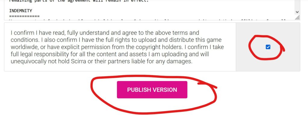 Enfin rends toi en bas de la page, valide les conditions d’utilisation et appuye sur le bouton Publish