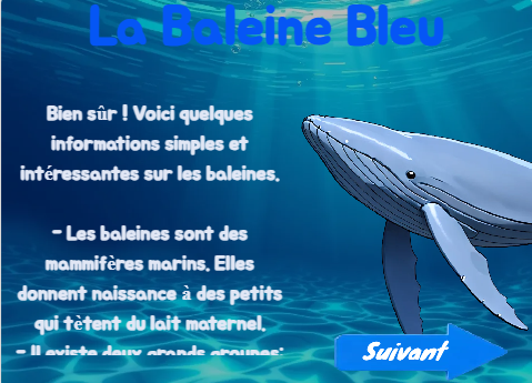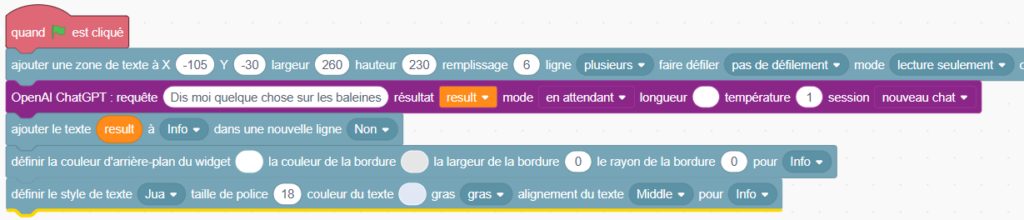 Pour cet exercice, je vais demander à ChatGPT de me générer un texte sur les baleines puis je vais utiliser les widget pour afficher ce texte.