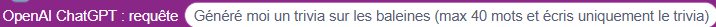Le résultat n’est vraiment pas terrible, le texte est trop grand et le début du texte est ChatGPT qui nous parle directement au lieu de parler des baleines.