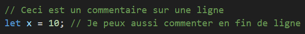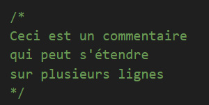 Note : Tu peux aussi utiliser /* … */ pour un commentaire sur une seule ligne, mais la convention est plutôt d’utiliser // dans ce cas.