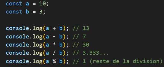Il n’existe qu’un seul type numérique en JS : pas de différence entre entier et décimal.