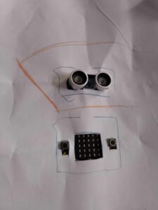 - laisse un espace pour mettre le capteur de distance pour faire les yeux