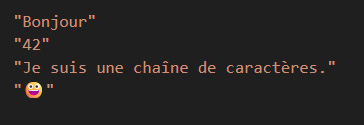 Afficher une chaine de caractères : Pour créer une chaine de caractères, ton texte sera forcément mis entre des guillemets.
