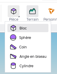 Pour créer un objet (ou Part) il suffit de cliquer sur “Élément” dans la barre haute, il faut ensuite sélectionner la forme souhaitée (Cube/Sphere/Coin…)