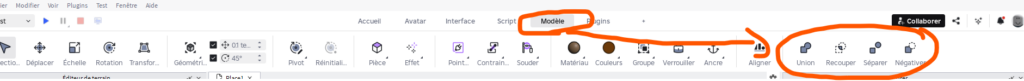 Pour pouvoir faire ça, il faut passer du menu de base, au menu Modèle. On trouvera alors les boutons qu’il nous faut.