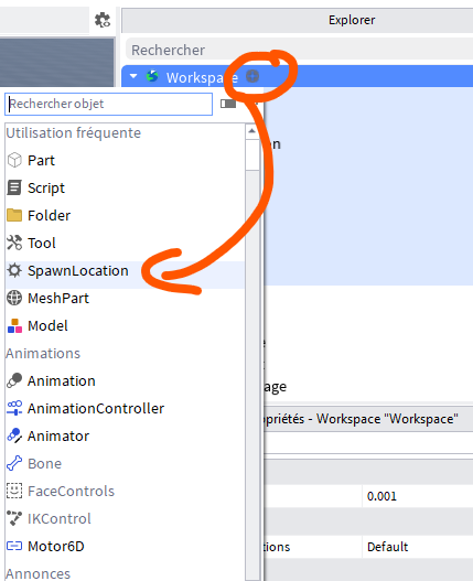 Pour créer un Trusspart, il faut utiliser la meme méthode que pour le spawnpoint mais je te conseil d’utiliser la barre de recherche cette fois !