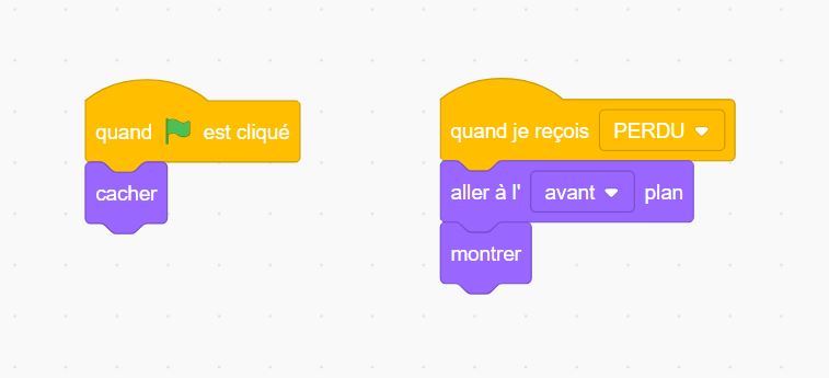 - Quand je reçois [Perdu] → montrer → aller à l’avant-plan