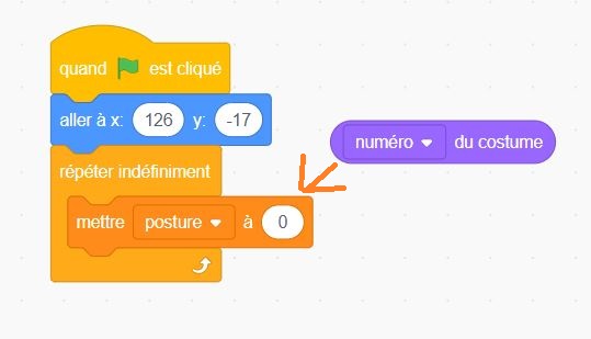 - Quand le joueur appuie sur flèche haut → Posture = 1