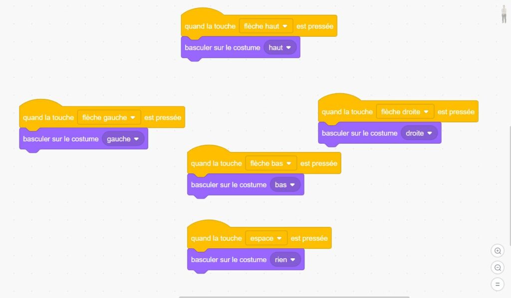 L’important, c’est que tes 5 costumes soient dans le même ordre que le Sprite du Joueur, car sinon le code, ne fonctionnera pas bien !!