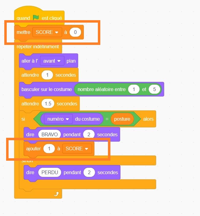 - On peut aussi : Quand il se trompe → remettre le score à 0 ou retirer 1 point.