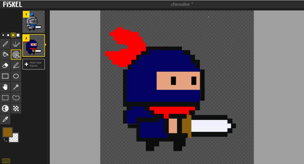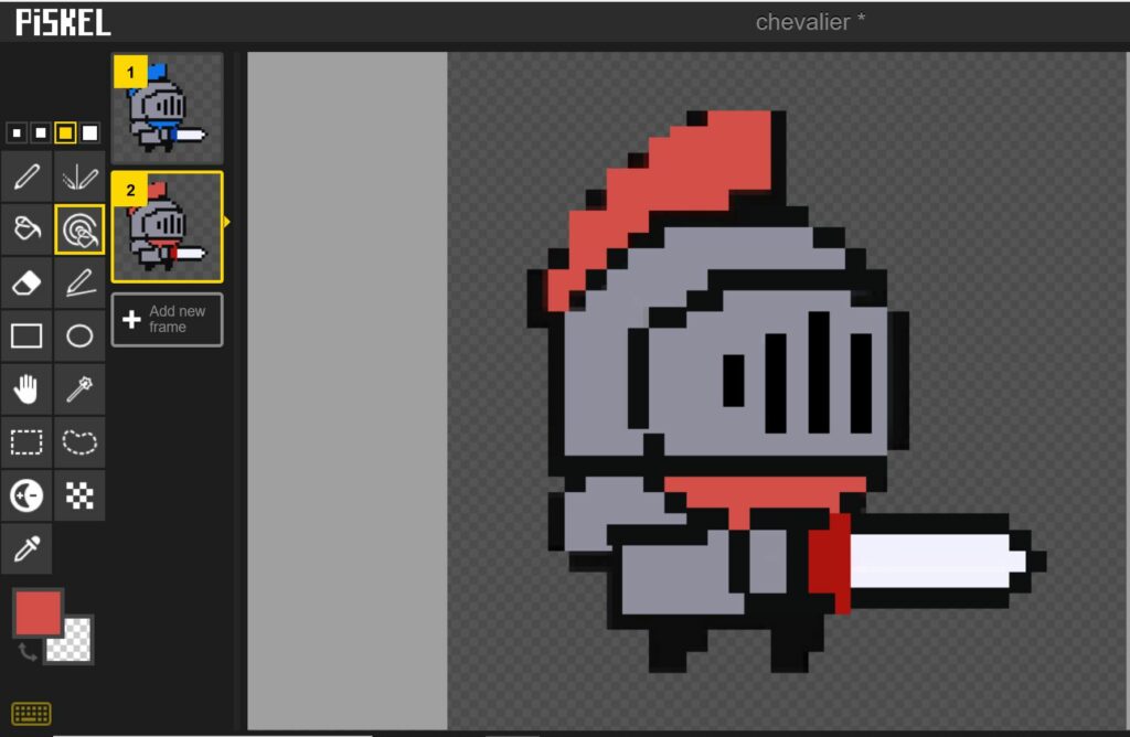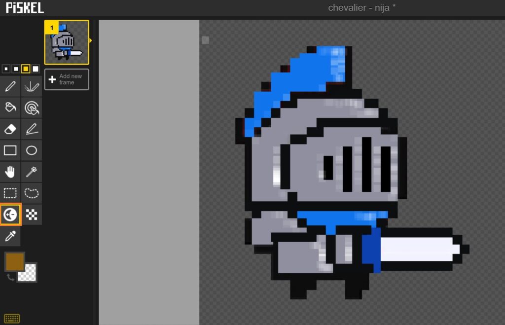 Une fois que ton chevalier est terminé, et importé dans Scratch. Tu peux retourner sur Piskel et créer un nouveau dessin. Tu peux dupliquer celui existant.