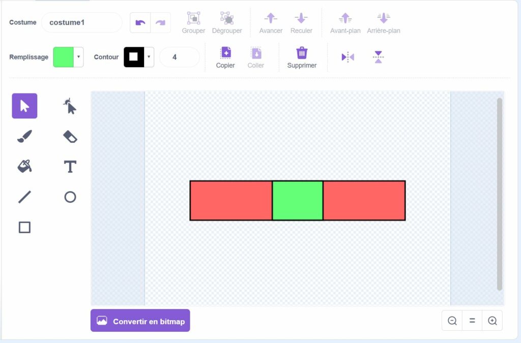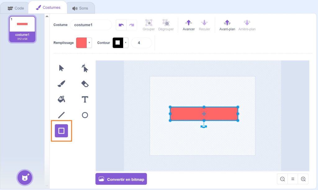 Clique sur “Peindre un nouveau sprite” pour créer la barre.