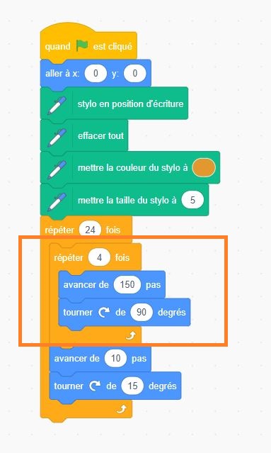 Ajoute une grande boucle “répéter 12 fois” et place ton code de la pétale à l’intérieur.