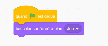 Tu peux maintenant coder la scène : quand le drapeau vert est cliqué, l’arrière-plan du jeu.