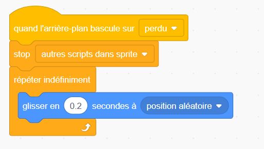 Quand ce sprite est cliqué, l’arrière-plan devient Perdu.