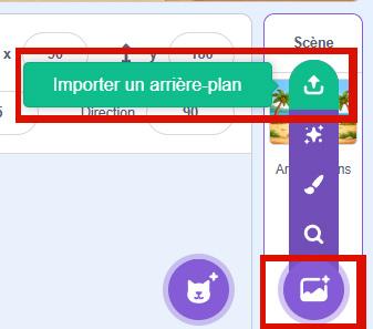 Puis, importe l’image dans la scène de Scratch en cliquant sur Importer un arrière-plan.