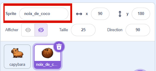 Cela t’aidera beaucoup à programmer plus facilement : tu sauras toujours quel sprite tu utilises et où appliquer tes blocs de code.