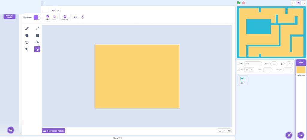 Commence par cliquer sur Sprite, puis choisis Peindre un nouvel sprite.