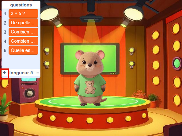 Si tu cliques sur ta liste “Questions”, elle va apparaitre dans ton visuel scratch.