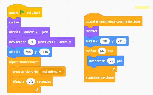 - cacher le sprite original, car ce sont les clones qui seront visibles