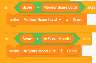 À la fin de la partie, vérifie si le score obtenu est supérieur au score mondial enregistré.