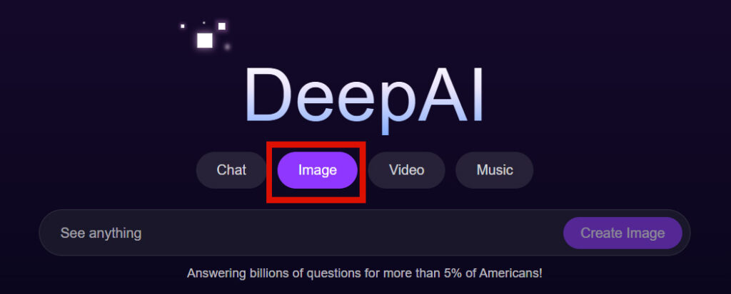 Lors de la première génération d’images, il te suffit de choisir “image”, écrite ton prompt et cliquer sur “Create image”